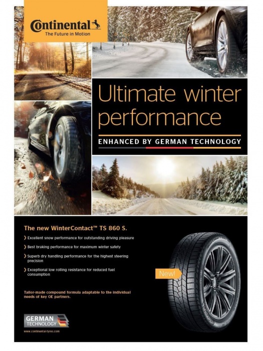 Zimná pneumatika WinterContact TS 860 S je vyvinutá pre vodičov športových a prémiových vozidiel, ktorí aj v zime očakávajú presnú ovládateľnosť, stabilitu a maximálnu priľnavosť. Dezén je optimalizovaný pre dynamickú jazdu a poskytuje spoľahlivý výkon na snehu, mokrej vozovke aj v nízkych teplotách.