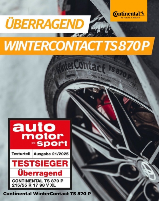 Zimná pneumatika Continental WinterContact TS 870 P patrí medzi najpokrokovejšie dezény značky Continental, navrhnuté špeciálne pre ťažšie a výkonnejšie vozidlá. Využíva smerovo optimalizovaný dezén s hustou sieťou 3D lamiel, ktoré sa pri záťaži vzájomne podopierajú a vytvárajú ostré hrany pre záber na snehu a ľade. V praxi to znamená kratšiu brzdnú dráhu v zimných podmienkach, istejšie rozjazdy v kopci a vyššiu stabilitu pri brzdení aj v náročných situáciách.