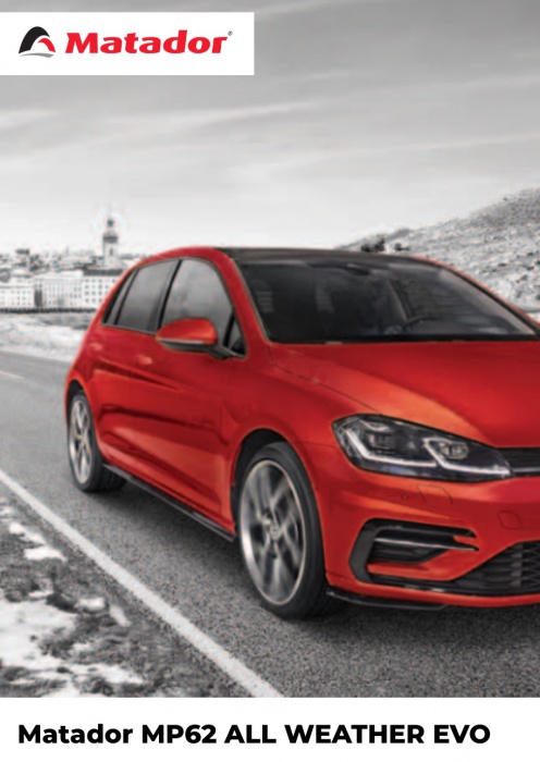 Matador MP62 All Weather Evo je moderná celoročná pneumatika zo stajne Matador – značky, ktorá využíva technologické zázemie koncernu Continental. Je určená pre vodičov, ktorí nechcú každú sezónu prezúvať, no zároveň očakávajú bezpečné správanie v daždi aj na ľahkom snehu. Dezén MP62 je optimalizovaný pre stabilitu, rovnomerné opotrebovanie a istotu v rôznych poveternostných podmienkach.
